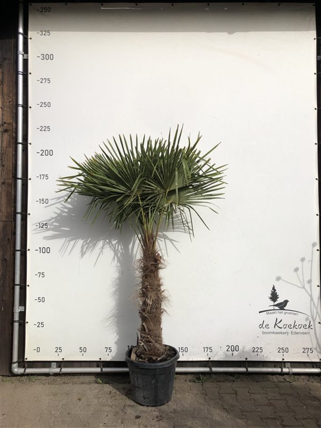 De Trachycarpus fortunei is de meest winterharde palm, groenblijvend en een stevige kaarsrechte stam. Het blad is handvormig, de boom kan in het Nederlandse klimaat een hoogte van ca. 10 m bereiken. De boom staat het liefst op een ietwat beschutte plek omdat het blad gevoelig is voor beschadiging door harde wind.